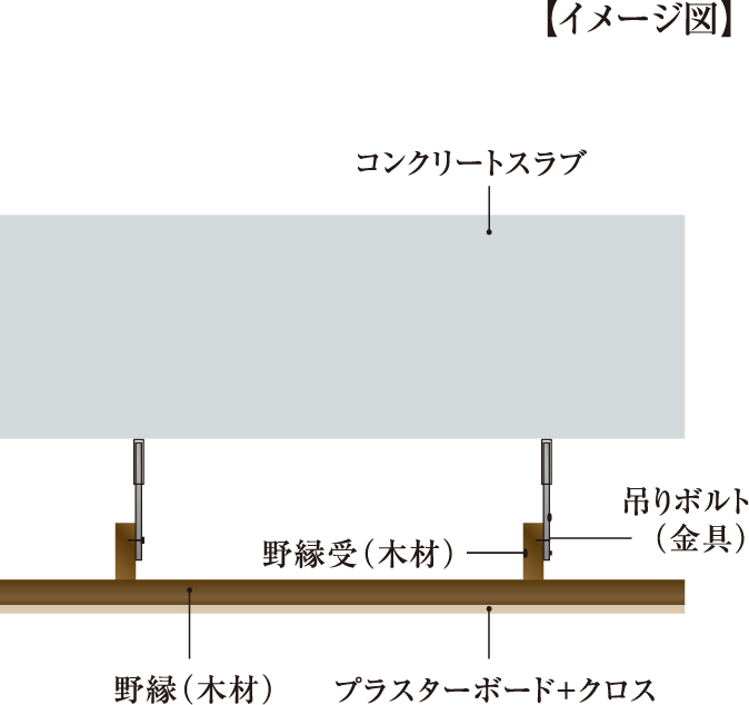 コンクリート天井に直接照明配線を打ち込んでいないので、照明位置を変える時に便利です。