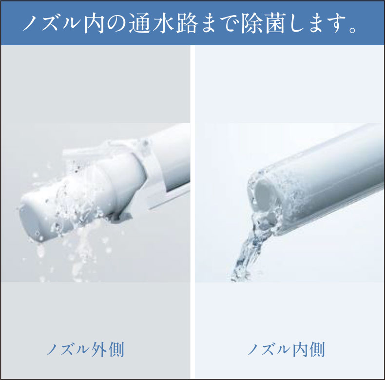 トイレ使用後に「きれい除菌水」が、ノズル内外を自動で洗浄・除菌。