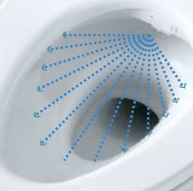 自動で便器にミストをふきかけて水のクッションを作り、汚れの付着を防ぎます。